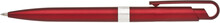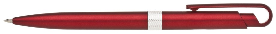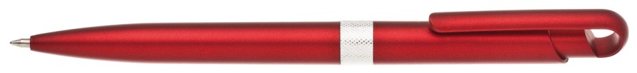Plastové, kuličkové pero FIROL má červené, metalické tělo se stříbrným rýhovaným proužkem uprostřed. Náplň velkoobsahová, modře píšící. Kolekce DESIGN.