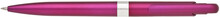 Plastové, kuličkové pero FIROL má růžové, metalické tělo se stříbrným rýhovaným proužkem uprostřed. Náplň velkoobsahová, modře píšící. Kolekce DESIGN.