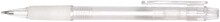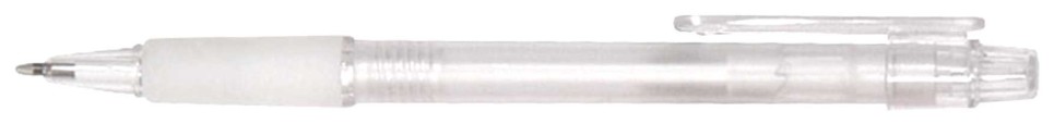 Kuličkové transparentní pero PROSTO. Má gumový úchop, tělo pera je bílé. Klip a špička pera je průhledná.Náplň je X20, modře píšící.