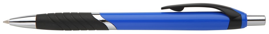 Plastové propisovací pero PEINA modré.Pero má černý pogumovaný úchop s vroubky, zakončený stříbrným šikmým poružkem.Klip je včerné barvě. Náplň je X20 , píše modře.