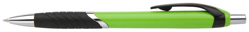 Plastové propisovací pero PEINA světle zelené.Pero má černý pogumovaný úchop s vroubky, zakončený stříbrným šikmým poružkem.Klip je včerné barvě. Náplň je X20 , píše modře.