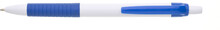 Propiska s bílým tělem, modrým gripem a klipem, náplň modře píšící.