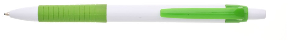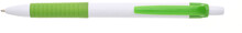 Propiska s bílým tělem, světle zeleným gripem a klipem, náplň modře píšící.