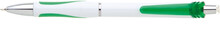 Bílá, plastová propiska s pochromovanými doplňky jako jsou klip, tělo cvakátka a proužek uprostřed těla tužky. Grip je tmavě zelený, částečně pogumovaný, stejně jako klip. Náplň X20, hrot 0,5mm.