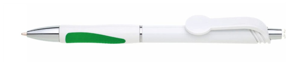 Varianta oblíbené propisky s rozšířeným klipem ve tvaru kola vhodným pro plnobarevný UV potisk. Gumový grip je v zelené barvě. Značka GABRIELIS.Náplň X20, hrot 1 mm, modře píšící.