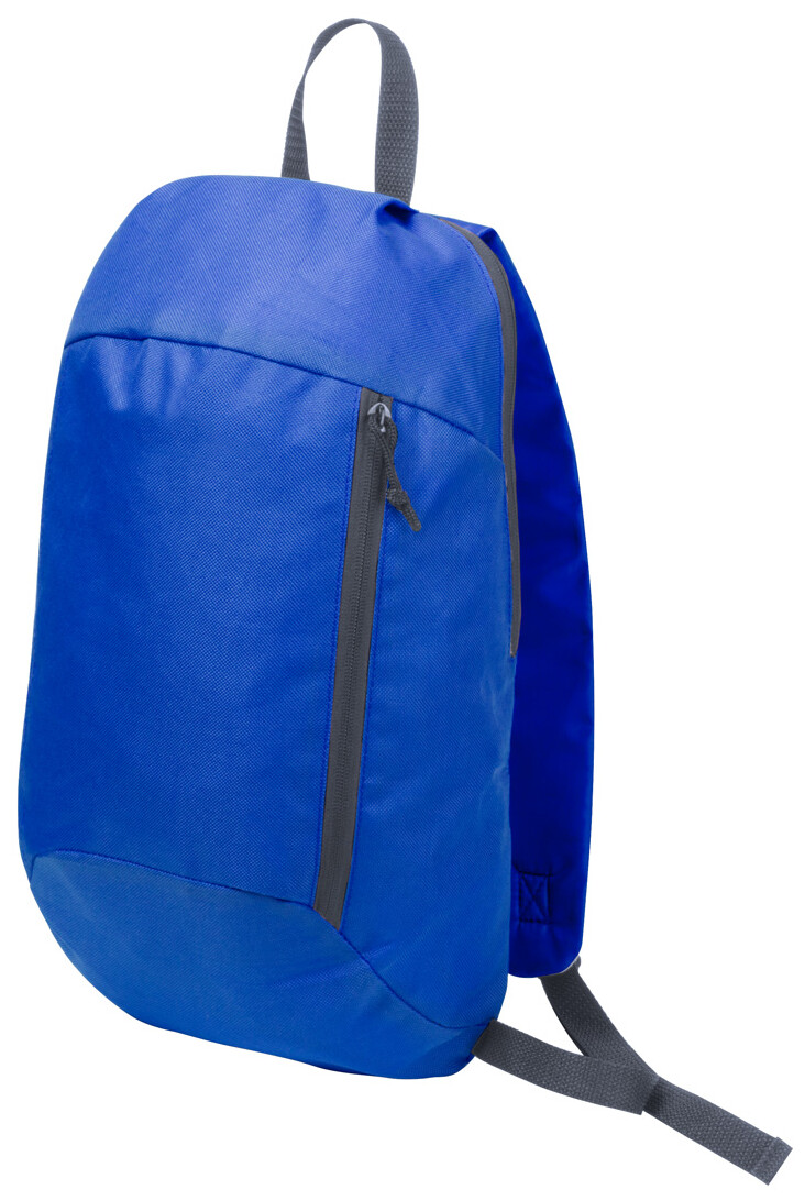 600D polyesterový batoh s vypolstrovanými zády, nastavitelnými popruhy a se zipem na přední kapse.