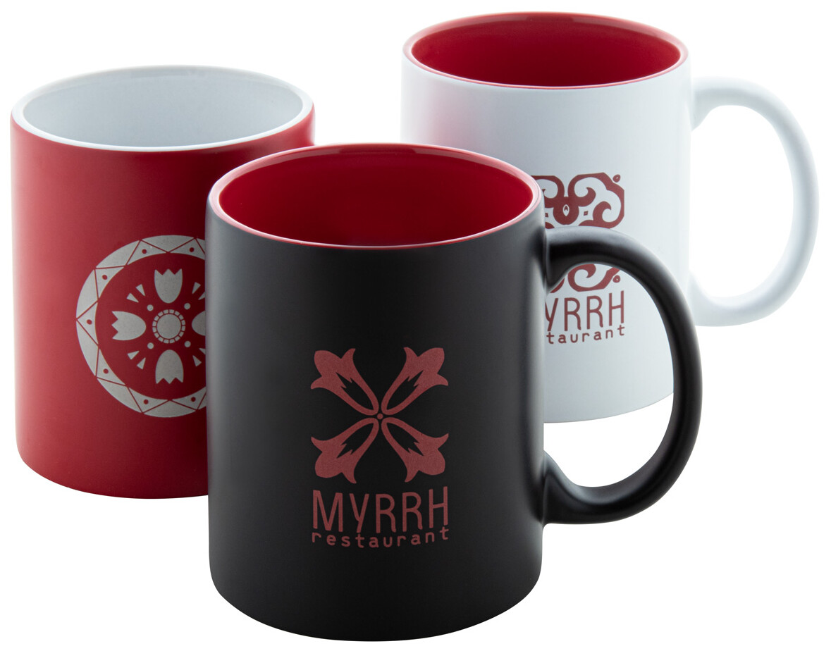 Barevný keramický hrnek s bílým vnitřkem, 350 ml. Speciální povrch pro laser, kdy vygravírované logo má stejnou barvu jako vnitřek hrnku. V dárkové krabičce.