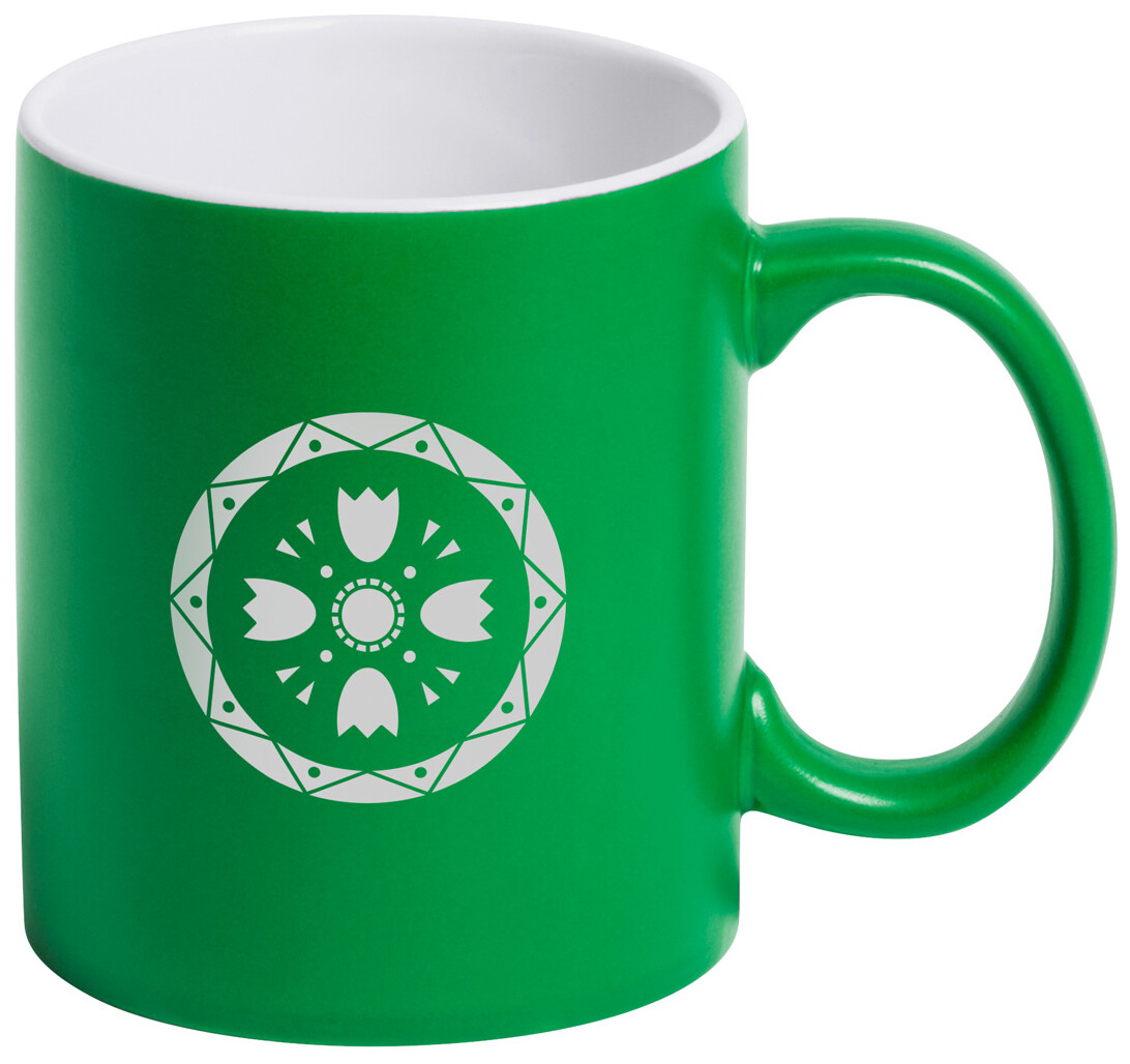 Barevný keramický hrnek s bílým vnitřkem, 350 ml. Speciální povrch pro laser, kdy vygravírované logo má stejnou barvu jako vnitřek hrnku. V dárkové krabičce.