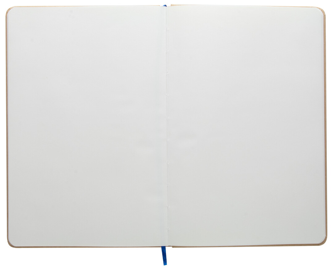 Blok s deskami potaženými recyklovaným kartonem se 100 čistými listy, barevnou záložkou a gumičkou.