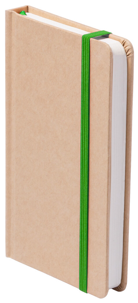Blok s deskami potaženými recyklovaným kartonem se 100 čistými listy, barevnou záložkou a gumičkou.