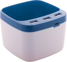 Stojánek na pera s USB hubem Warger, modrá, bílá