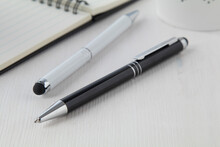 Hliníkové kuličkové a dotykové pero s modrou náplní.