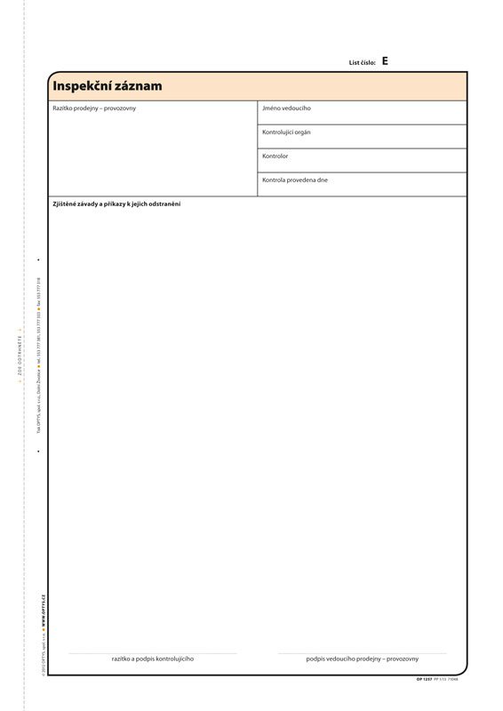 | OPT-1257 | INSPEKČNÍ KNIHA A4 | 133,76 Kč | 161,85 Kč | 1 ks | |||