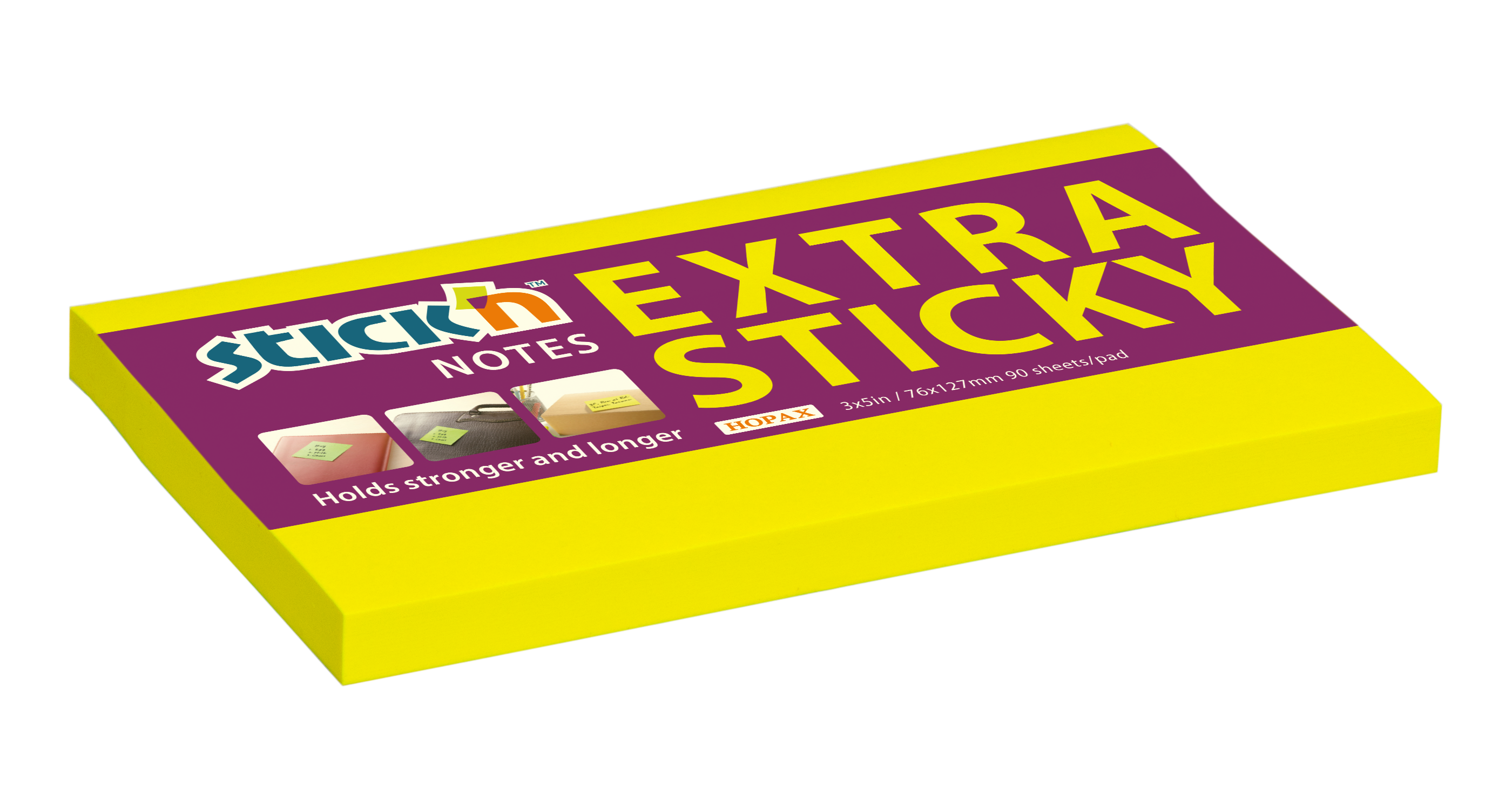 Samolepicí bloček Stick'n by Hopax EXTRA STICKY, 76 x 127 mm, neon žlutý, 90 lístků