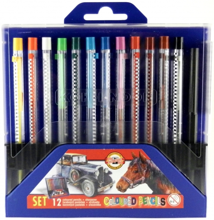 Souprava mechanických pastelových tužek složená z 12 kusů mechanických pastelek a hrotítka. Pláště pastelek a hrotítko jsou vyrobeny z čirého průhledného polystyrenu. Pastelky s mechanickým vysouváním...