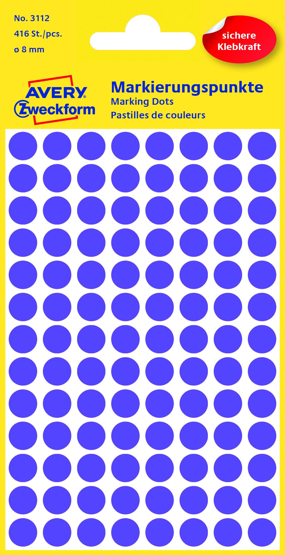 | 3112 | ETIKETY Avery Zweckform označ. kolečka O 8 mm, fialová, 416 ks | 18,00 Kč | 21,78 Kč | 1 bal | |||