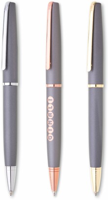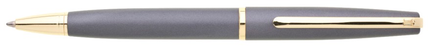 Elegantní šedá mosazná propiska s doplňky ve zlaté barvě. Laser zlato-šedý
