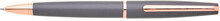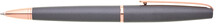 Elegantní šedá kovová propiska s lesklým efektem barevného laseru v barvě doplňků.