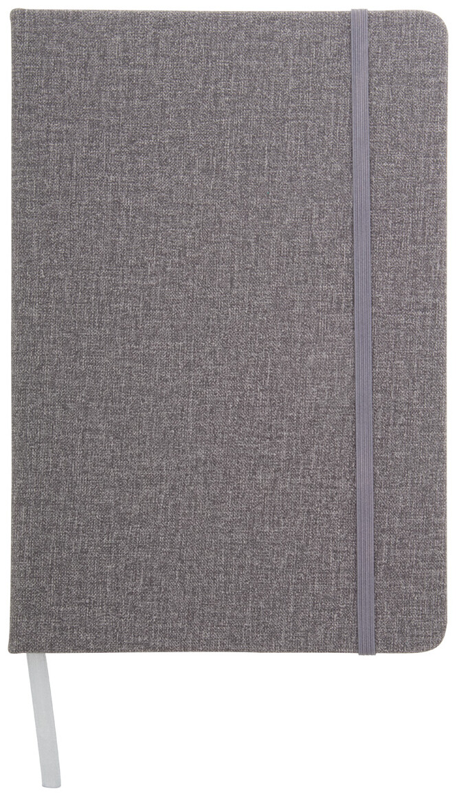 Blok A5 s deskami ze strukturované PU kůže, s gumičkou a 80 listým linkovaným blokem.