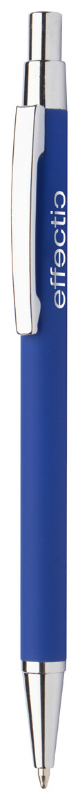 Hliníkové kuličkové pero s pogumovanou úpravou a modrou náplní. Speciální povrch pro zrcadlový laser.