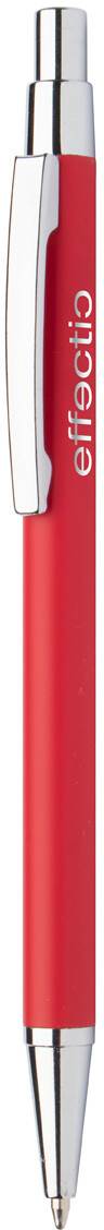 Hliníkové kuličkové pero s pogumovanou úpravou a modrou náplní. Speciální povrch pro zrcadlový laser.