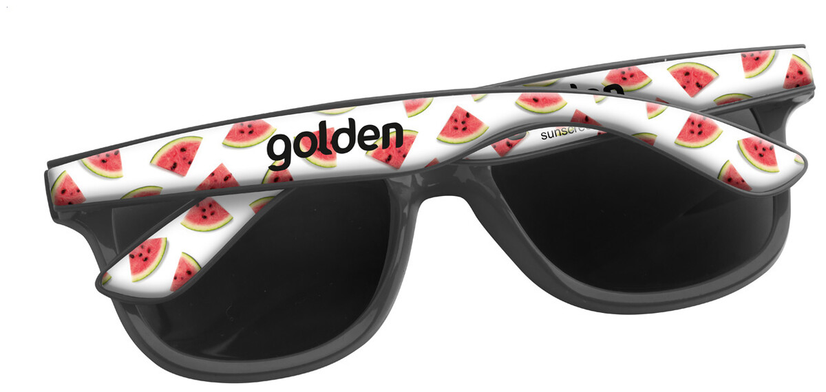 Plastové sluneční brýle se speciálními nožičkami pro epoxy potisk. S ochranou UV 400. Cena zahrnuje epoxy potisk na nožičkách, nezahrnuje tiskovou přípravu. Min. mn.: 100 ks.