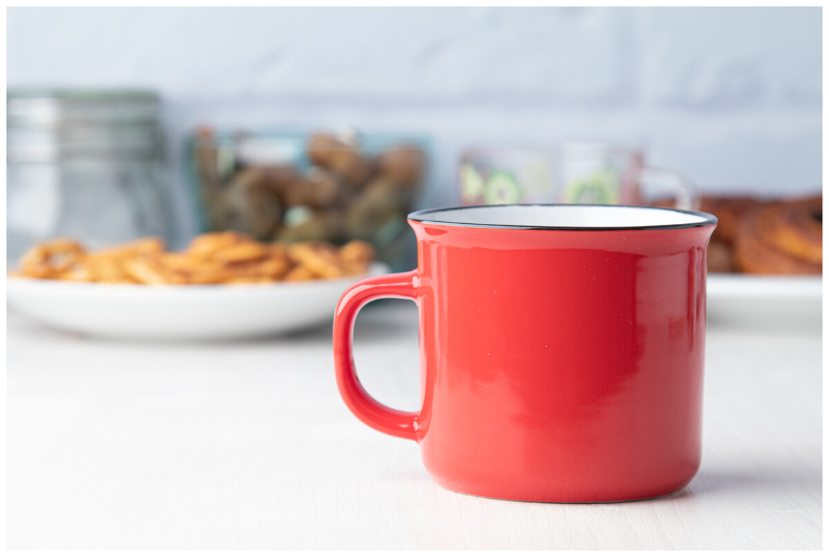 Retro hrnek Woodstock, červená, bílá