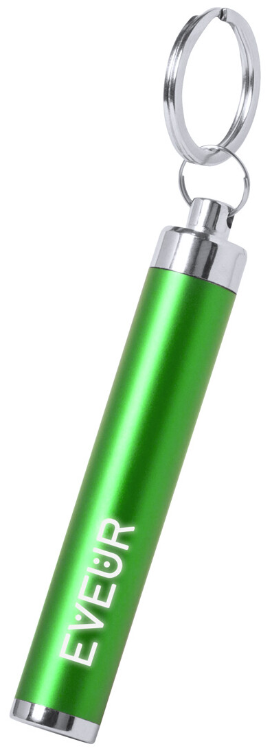 Plastová baterka s 1 LED světlem a kovovým kroužkem na klíče. Vygravírovaná loga na těle baterky svítí. Vč. knoflíkových baterií.