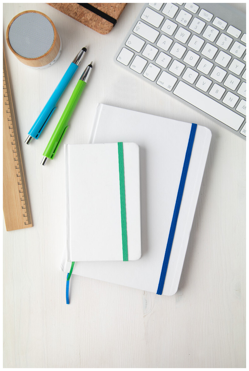 Blok se 100 čistými listy v papírových deskách a barevnou gumičkou, A5.