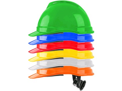 Ochranná přilba V-Gard® 500 s upínacím kolečkem (Fas-Trac III), větrací systém, 4 bodové uchycení s PVC potním páskem, hmotnost (včetně upínání Fas-Trac III): 360 gsm, ochrana před boční deformací, robustní design, odolná skořepina, větrací otvory pr