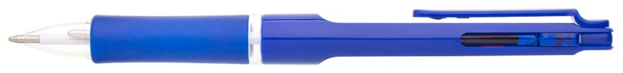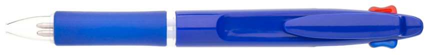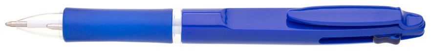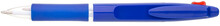 Kuličkové pero BARNA - 2 v 1, tzn.,že píše červeně a modře, vyrobeno z modrého plastu s gumovým gripem v barvě tužky.