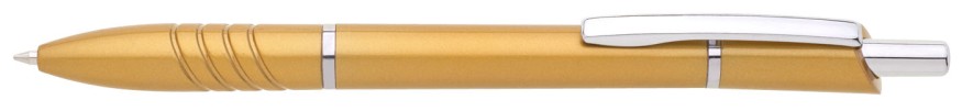 Zlatá gelová plastová propiska s pochromovanými doplňky s gelovou velkoobsahovou náplní.