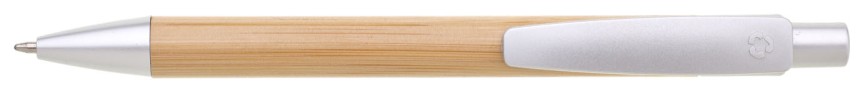 Dřevěné kuličkové pero BORGO - tělo je vyrobeno z bambusu, špička, klip a cvakátko je ze stříbrného plastu.