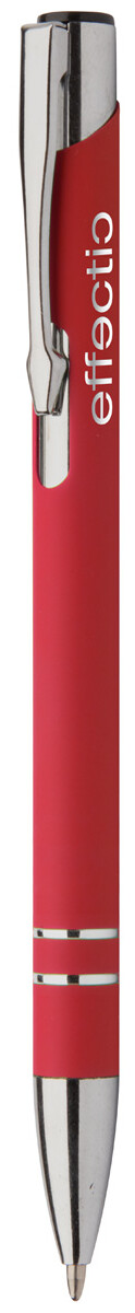 Hliníkové kuličkové pero s pogumovaným povrchem a modrou náplní. Speciální povrch pro laser stříbrného loga.