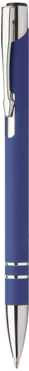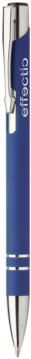 Hliníkové kuličkové pero s pogumovaným povrchem a modrou náplní. Speciální povrch pro laser stříbrného loga.