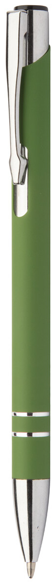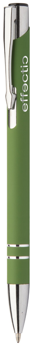 Hliníkové kuličkové pero s pogumovaným povrchem a modrou náplní. Speciální povrch pro laser stříbrného loga.