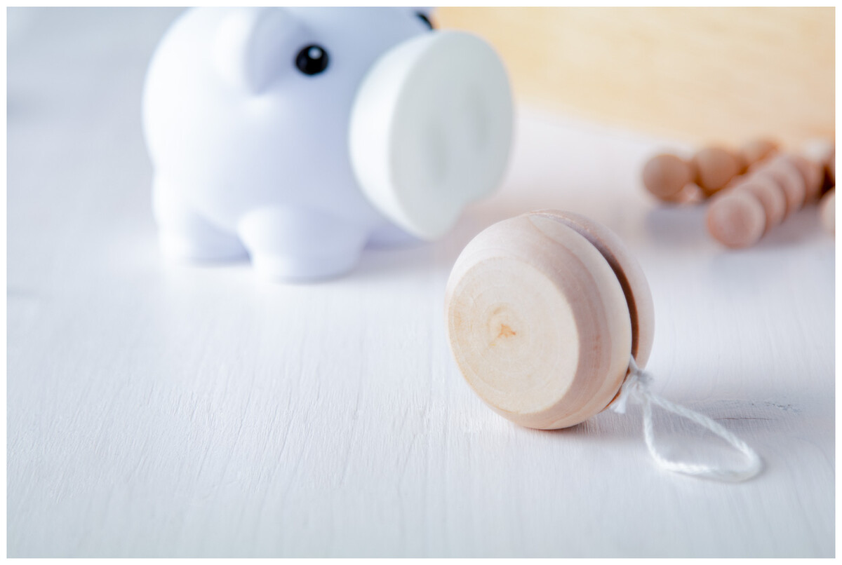 Dřevěné JoJo s bílou bavlněnou šňůrkou.