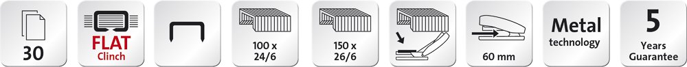 • Balení: včetně 200 sponek 24/6 DIN SUPER