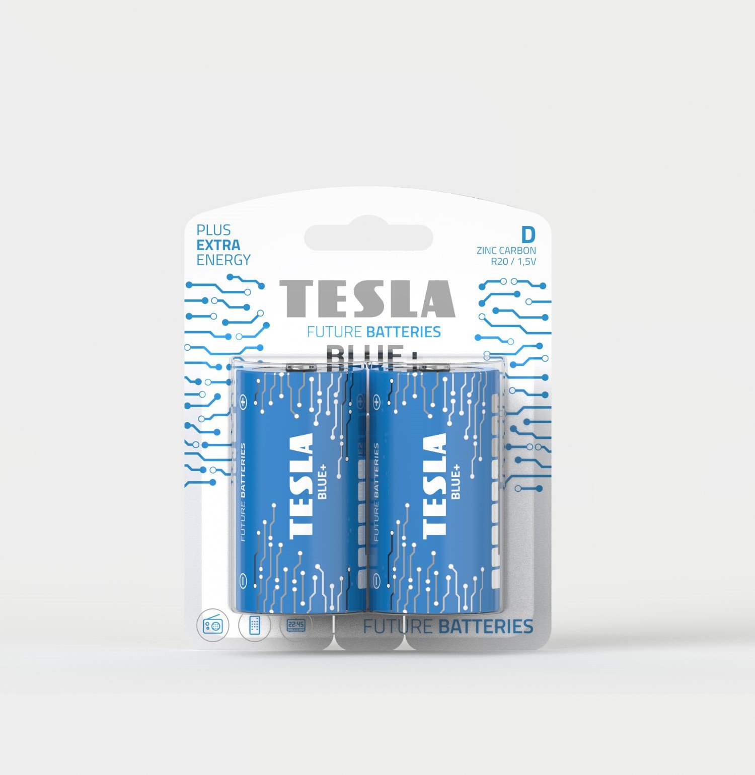 TESLA BLUE + D je řada zinko-uhlíkových baterií se základním výkonem 1,5 V, vzhledem k těmto vlastnostem jsou vhodné především pro méně náročné přístroje s odběrem malého množství proudu a to např. do hodin a budíků, rádií nebo některých svítilen. Hlavním benefitem těchto baterií je cenová dostupnost.