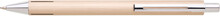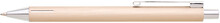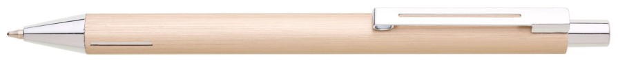 Elegantní hliníková propiska s jemně rýhovaným, zlatavým povrchem a stříbrnými doplňky.