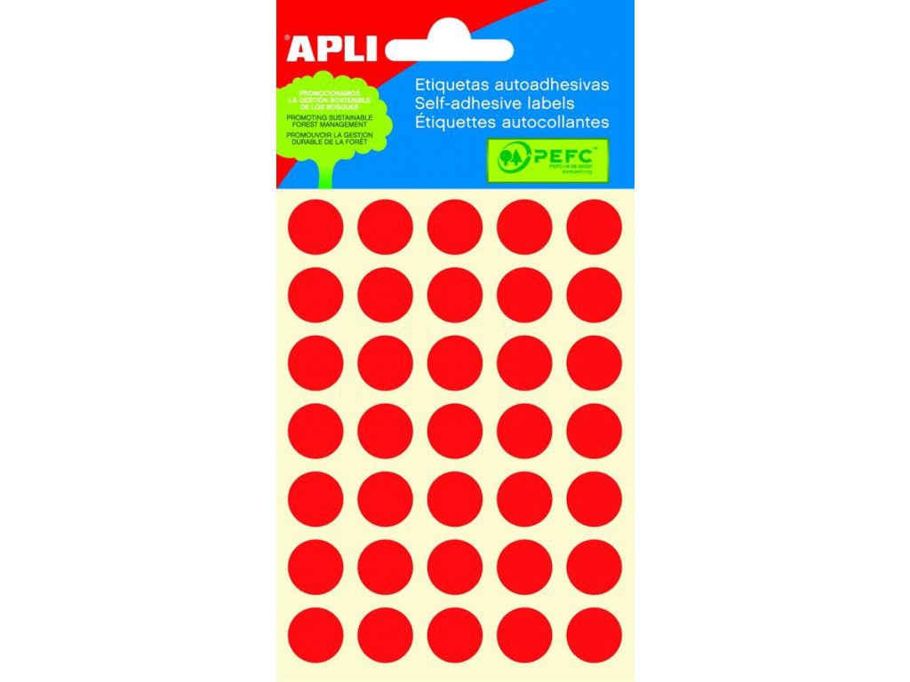 Etikety Apli 19 mm prům., červené, 100 ks jsou kulaté barevné etikety vhodné pro značení, třídění a organizaci.