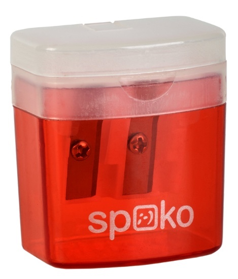 Kancelářské ořezávátko ve dvojítém provedení na dvě velikosti tužek, s větším průsvitným zásobníkem. Barevný mix.
