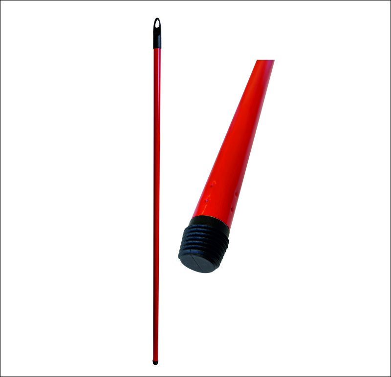 Červená tyč s jemným závitem je určena k osazení smetákem či mopem pro pohodlné a stabilní čištění.