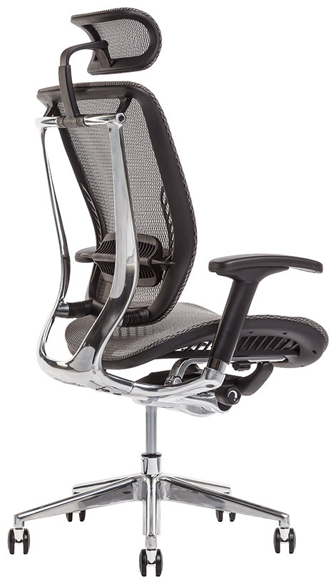 - Židle čalouněná samonosnou síťovinou zajišťující celodenní větrání zad