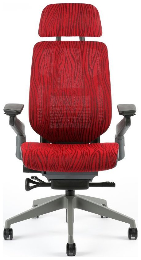Kancelářská židle s područkami a podhlavníkem KARME MESH A-09 červená žíhaná