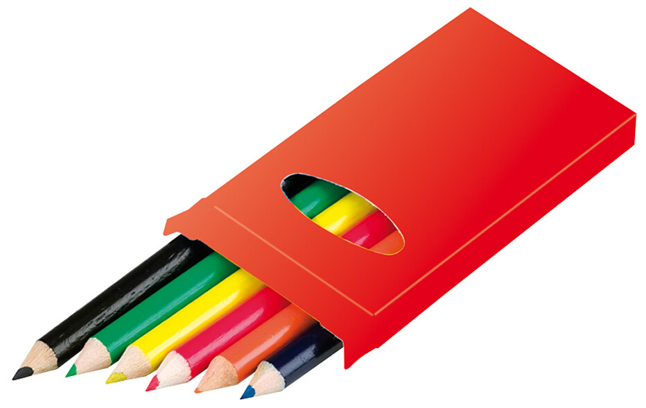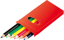 Dřevěné pastelky (6 ks) v barevné papírové krabičce.