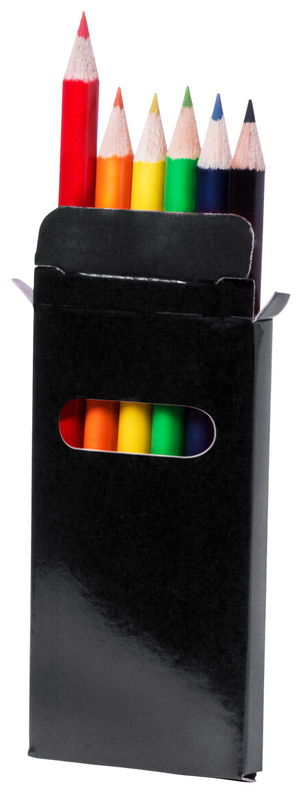 Dřevěné pastelky (6 ks) v barevné papírové krabičce.