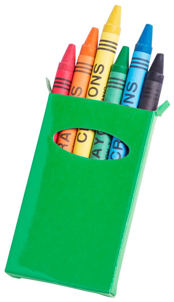 Voskovky v barevném papíru (6 ks) a v barevné papírové krabičce.
