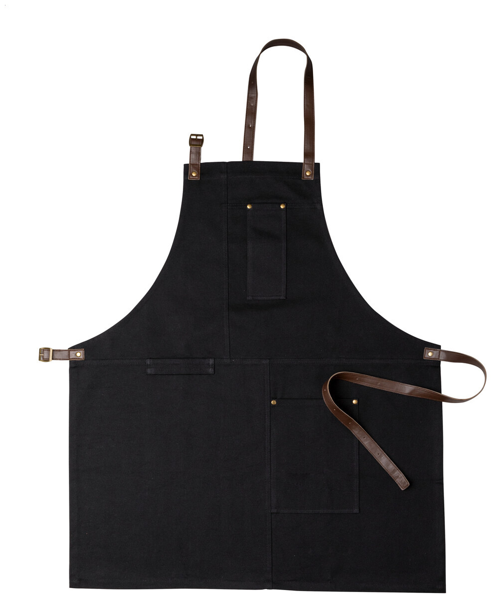 Bavlněná zástěra s předními kapsami a nastavitelnými řemínky z PU kůže, 340 g/m2.
