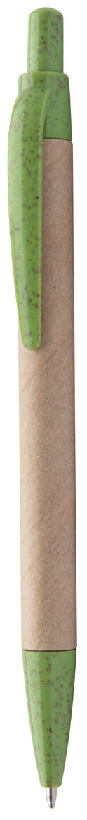 Kuličkové pero z recyklovaného papíru s ekologickými plastovými částmi z pšeničných stébel, s modrou náplní.